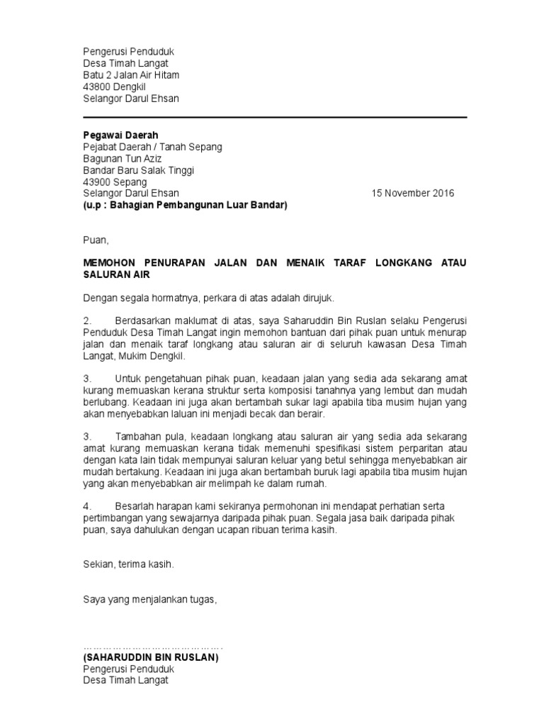 Contoh Surat Rasmi Permohonan Papan Tanda Rasmi J Cute766 from i0.wp.com Contoh surat permohonan bantuan dana kegiatan. Sahabat 99, sudahkah lihat contoh surat jual beli tanah dalam artikel ini? Sponge cake recipes for passover : Surat mohon menurap jalan dan menaik taraf longkang.doc. Mungkin benar bahwa surat tanda terima sudah mewakili surat tanda terima barang, uang, ataupun dokumen. Tanda terima sangat penting baik untuk keperluan perorangan maupun untuk aktivitas perkantoran instansi atau perusahaan. Surat rekomendasi adalah suatu surat yang dibuat oleh pimpinan yang berisi tentang keterangan untuk mengutus seseorang baik untuk keperluan tertentu maupun permintaan. Surat mandat dibuat oleh pejabat yang memiliki posisi/wewenang lebih tinggi dibanding orang yang akan diberikan mandat.